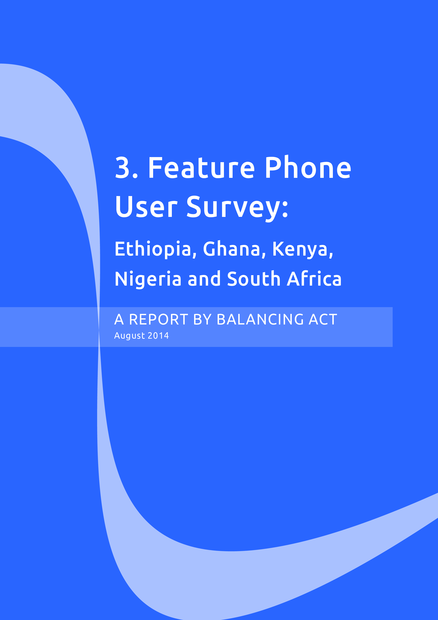 "Feature phone users are significantly more likely to use the Internet almost as much radio and TV for news and information. This is not an either/or set of choices but the Internet is part of the range of media they use. Internet is in second position in Nigeria, third position in Ethiopia and Kenya; fourth position in Ghana and fifth position in South Africa. This is behind TV, radio and sometimes friends and family. Social media was used by around two-thirds of respondents or slightly less in all countries except Ethiopia. A quarter to a third of all respondents obtained information using the Internet from NGOs." (Summary, page 6)