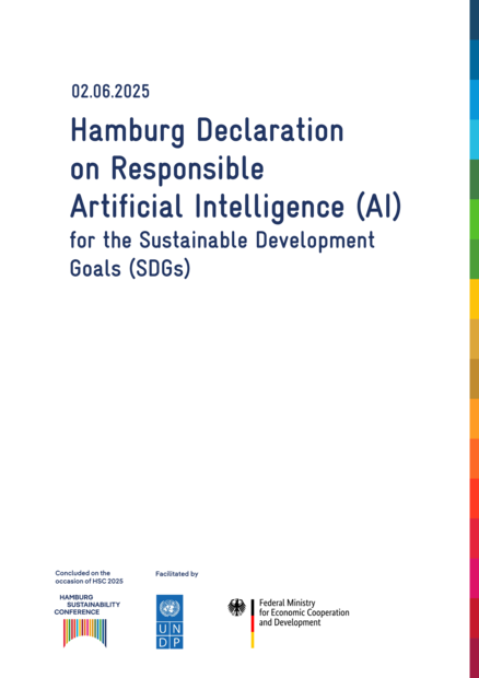 "As global stakeholders from governments, international organizations, the private sector, academia, and civil society, we convene in Hamburg to shape a human-centric, human-rights-based, inclusive, open, sustainable, and responsible AI future. We commit to advancing AI for the SDGs, aligning with ongoing international efforts. A responsible AI future must be built on equal and meaningful participation, with actions to ensure that all stakeholders, especially those from emerging markets, developing economies, and vulnerable groups, have fair and equitable access to, as well as ownership of, computing, data, investment, and resources for capacity and talent development. AI’s benefits must not remain concentrated among a privileged few. We are committed to bridging digital divides and empowering all nations and communities to co-create and leverage AI solutions and evaluations that serve people and the planet. To achieve this, we call for leveraging AI responsibly, inclusively, and sustainably, aligned with the five pillars of the 2030 Agenda for Sustainable Development: people, planet, prosperity, peace, and partnerships." (A Joint Vision)