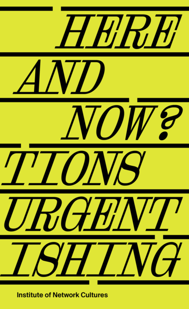 "Here and Now? Explorations in Urgent Publishing' presents the results of the two-year research project Making Public, led by the Institute of Network Cultures in collaboration with 1001 Publishers, Amateur Cities, Amsterdam University Press, ArtEZ University of the Arts, Hackers & Designers, Mind Design, Netherlands Institute for Sound and Vision, Open!, Open Set, Puntpixel, Studio BLT, Valiz, and Willem de Kooning Academy." (Colophon)