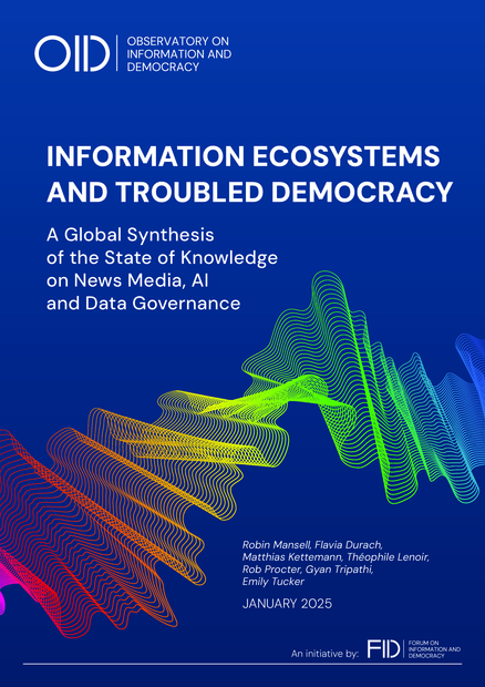 "This report is an invitation to grapple with the complex interplay between infrastructure, media systems, civil society, and public sector institutions. Our findings suggest that effective policy solutions must: acknowledge the historical, political, economic, and social forces that shape information flows and sociotechnical systems; develop holistic approaches that consider the entire ecosystem rather than isolated interventions; understand how data governance and AI systems fundamentally influence information production, dissemination, and consumption; use a wider array of authorities and policy tools to create legal, regulatory and normative frameworks that protect democratic values while empowering communities and individuals who are embedded in increasingly opaque sociotechnical systems. By exploring both individual-level phenomena and systemic dynamics, this report suggests how legislative, regulatory, competition, education and other public authorities as well as tech platforms and citizens themselves all have a role to play in cultivating information ecosystems where democracy can better thrive." (Foreword by Courtney Radsch, page v-vi)