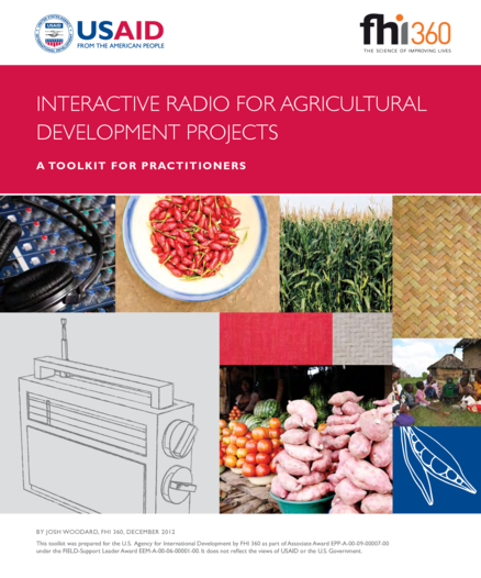 "This toolkit is designed to help USAID projects and other implementing organizations use interactive radio to augment the traditional agricultural extension services they are providing. In addition, it aims to provide practitioners with a foundational understanding of what is needed to create compelling radio programming. It is important to stress that this toolkit does not assume that radio is the most appropriate solution for disseminating agricultural information. Rather, given the fact that radio continues to be the most readily accessible communication tool in much of sub-Saharan Africa, this toolkit aims to enable practitioners to develop a more systematic approach to using interactive radio as one medium through which they share information with farmers." (Introduction)