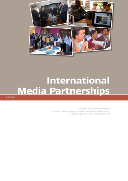 "This report provides an overview of the discussions and findings from the ‘International Partnership Meeting’ held in Copenhagen in September 2009, as well as the best practices and lessons learnt from organisations engaged in Partnerships over the past years. Representatives of twenty one international media support and press freedom advocacy organisations met to assess the experiences of working together in Partnerships, and explored ways to further improve collaborative support to media in countries affected by conflict, human insecurity and political transition." (Introduction)