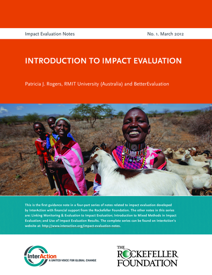 "This first guidance note, Introduction to Impact Evaluation, provides an overview of impact evaluation, explaining how impact evaluation differs from – and complements – other types of evaluation, why impact evaluation should be done, when and by whom. It describes different methods, approaches and designs that can be used for the different aspects of impact evaluation: clarifying values for the evaluation, developing a theory of how the intervention is understood to work, measuring or describing impacts and other important variables, explaining why impacts have occurred, synthesizing results, and reporting and supporting use. The note discusses what is considered good impact evaluation – evaluation that achieves a balance between the competing imperatives of being useful, rigorous, ethical and practical – and how to achieve this. Footnotes throughout the document contain references for further reading in specific areas." (Introduction, page 1)