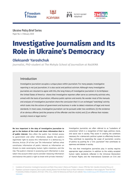 Investigative Journalism and its Role in Ukraine’s Democracy