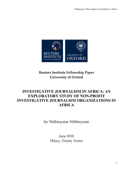 "This exploratory study [.] argues that in a continent where traditional media organizations are increasingly failing to hold power to account, not-for-profit organizations are leading by example, setting the agenda and constantly scrutinizing those in power. This study further looks at the motivation behind the formation of three not-for-profit investigative organizations, their funding model, as well as their impact in their respective countries. The following organizations are being studied: South Africa’s Amabhungane Centre for Investigative Journalism; Nigeria’s Premium Times Centre for Investigative Journalism; and Botswana’s INK Centre for Investigative Journalism. This study also argues that although these organizations are playing a crucial role in keeping power in check, their overreliance on donor organizations may spell doom for some of them." (Abstract)