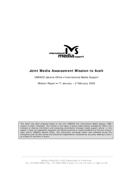 Joint Media Assessment Mission to Aceh: Mission Report. 17 January - 2 February 2005