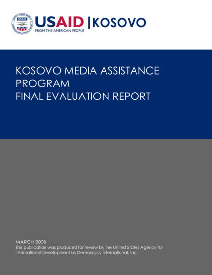 "This evaluation of USAID’s Kosovo Media Assistance Project (KMAP) took place close to the end of the three-year project, and addressed two main issues: (1) what has been the impact of KMAP? and (2) based on findings related to KMAP, what recommendations can be made to guide possible future USAID media programming in Kosovo? The Scope of Work (SOW) poses 19 questions and directs that the body of the evaluation should answer these questions. Therefore, we address each question below." (Page 1)