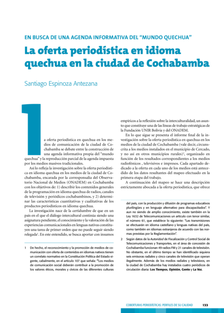 La oferta periodística en idioma quechua en la ciudad de Cochabamba