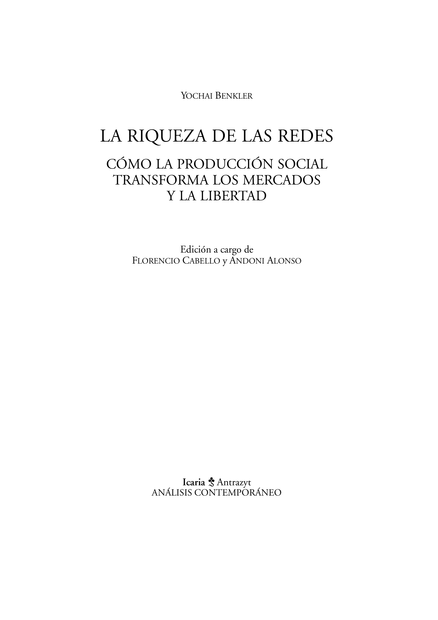 Other editions: Engl. ed.: The Wealth of Networks: How Social Production Transforms markets and freedom. Yale University Press, 2006