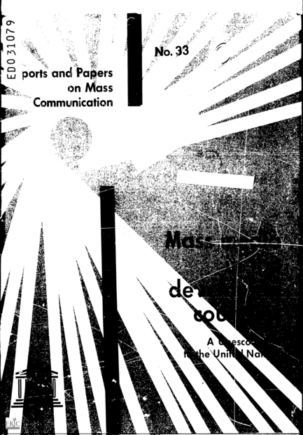 "There is statistical evidence to show that the expansion of a nation's economy is paralleled by the expansion of its media. Almost 70 per cent of the world's population, spread over 100 countries, does not have basic mass information facilities. These areas are always underdeveloped and lack facilities for formal education. It is a principle of the United Nations that freedom of information is a basic human right, and that is the reason for this report. It describes past efforts, both by special agencies and by United Nations organs, to develop information media, and sketches the problems of developing information media in society, focusing on the problems as they exist in South East Asia, Latin America, Africa, the Middle East, and other areas. It offers recommendations, first in general terms, and then according to media: news agencies, press, radio, film, and television. The report concludes with a discussion about financing a development program. References are provided." (https://eric.ed.gov)
