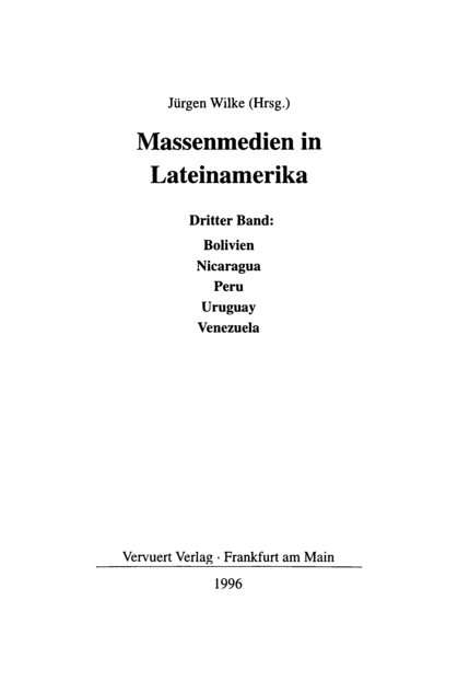 Massenmedien in Lateinamerika. Dritter Band: Bolivien, Nicaragua, Peru, Uruguay, Venezuela