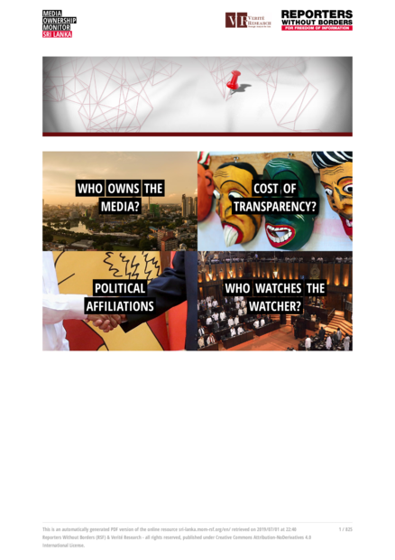 "Viewership, listenership and readership in the Sri Lankan media market is highly concentrated among a few media owners, many of whom have political affiliations. Limited access to ownership information and a number of regulatory shortcomings pose a further threat to media pluralism in the country." (http://www.mom-rsf.org/en/countries/sri-lanka)