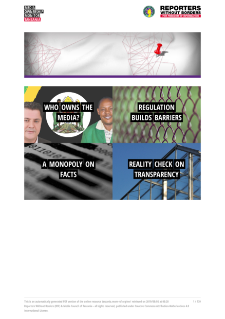 "Only a few media companies have a predominant market position and thus a potentially high influence on public opinion in Tanzania. Whereas the regulatory framework should in theory safeguard media pluralism and prevent media concentration, it shows considerable gaps in practice. Moreover, the legal environment restricts data collection and research." (http://www.mom-rsf.org/en/countries/tanzania)