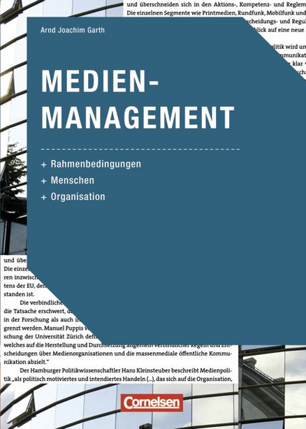 Portfolio, Märkte, Ökonomie; Medienpolitik, Ethik, Verantwortung; Psychologie, Kommunikation; Personal, Führung; Journalistische Anforderungen; Semiotik; Produktion, Projekt, Steuerung; Programmplanung, Qualität; Marketing, Media, Marke; Wertschöpfung; Controlling, BWL-Prozesse; Publizistik, Medienrecht; Agenturgründung; Internet, Web 3.0." (Verlagsbeschreibung)