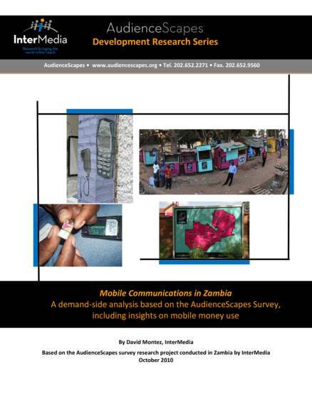 "Youth and young adults (15-29) are often assumed to be leaders in mobile phone use, but this is not entirely the case in Zambia. While those 15 to 29 make up the largest segment of overall mobile phone users, they do not show the highest rate of weekly (regular) users that is taken by those 30 to 44. Geographic Breakdown: There are substantial differences in rates of mobile phone use among Zambia's nine provinces. These differences reflect varying levels of human development around the country, but other factors come into play. Cost Factors: When respondents were asked to agree or disagree that "using a mobile phone is expensive," 63 percent answered in the affirmative. Even those residing in high-income households were more likely to agree than disagree with the statement. The same can be said for frequent mobile users, with some 52 percent of daily users and 53 percent of regular users agreeing or strongly agreeing with the statement that mobile phone use is expensive. Mobile Radio: A key feature of Zambian (and more generally, African) mobile phone use is an old-new media convergence phenomenon: handset-based radio listening. Among regular mobile users, a third said they listen to the radio via their handset on a weekly basis, and 25 percent said they listen on a daily basis. Unlike the use of mobile internet, radio listening is more evenly spread across urban and rural users. Mobile-based radio listening may also continue to expand; given that youth and young adults (YYAs) are currently the most likely to do so and thus will set the pattern going forward." (Report sumary, page 7)