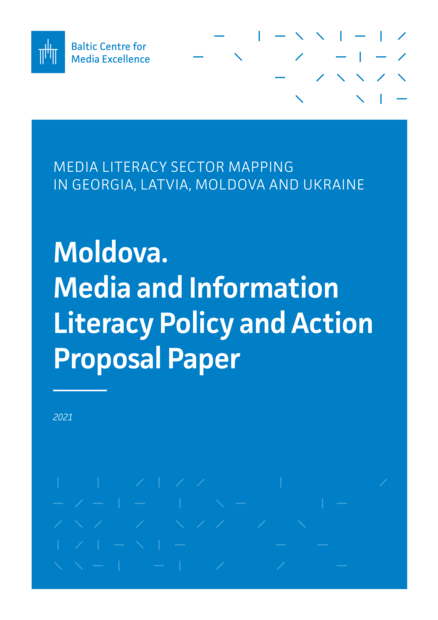 "The Moldovan Independent Journalism Centre (IJC) in cooperation with Baltic Center for Media Excellence (BCME) undertaken in August-November 2021, the research "Comprehensive approach and advancement of media and information literacy in Moldova". This Media Literacy policy and action proposal paper was drafted by the country research author Angela Vacaru, based on above mentioned research findings and recommendations and other media information literacy related events/discussions encountered during the research project. It is focused on two mutually inter-linked MIL sectors/aspects: inter-institutional and cross-sector cooperation and coordination of media literacy initiatives and actions and formal education system, but also other recommendations to improve the overall media and information environment in Republic of Moldova. These recommendations are for institutions engaged in the media literacy activities in the country, mainly: government, relevant state and education institutions, non-governmental organizations and donor organisations." (Background information, page 3)