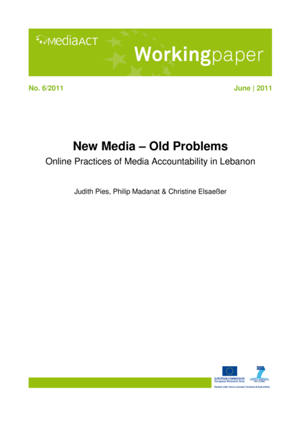 "Lebanon’s media has been envied for its press freedom and high quality by many Arabs from the region for decades. After 15 years of civil war the media had quickly started to flourish again. Yet, internal and external observers have been concerned about the close links between the media and political and religious groups that have led to highly politicized journalism. There is no professional organisation that could unify journalists from the various fractions and set in force binding rules like a code of ethics. A media council does not exist, journalists unions are not involved in media accountability practices and a state’s ombudsman has never been instituted. Yet, internal accountability practices are relatively well developed. As political affiliation of media outlets is openly handled (e.g. staff is mainly recruited from each media’s particular political group, party emblems are published prominently, mission statements and ownership information are partly available), Lebanese normally know how to interpret the news. Accountability practices that were already in evidence in offline media have been adopted by the majority of websites, such as by-lines, precise references in stories and letters-to-the-editor." (Abstract)