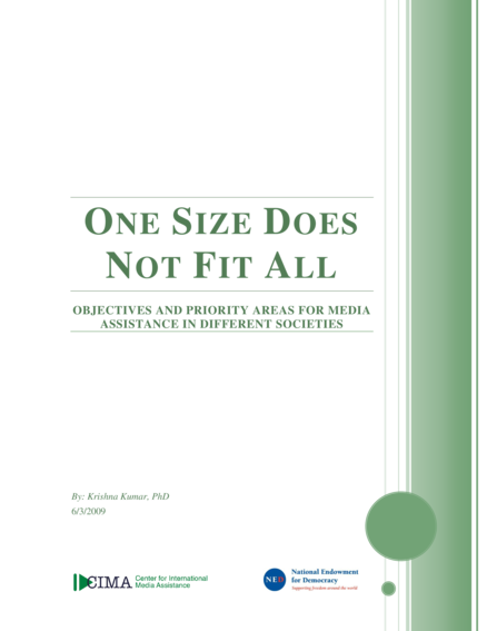 "The essential thesis of this paper is that the requirements and problems of the media sector differ substantially from country to country according to its political, social and economic conditions: in authoritarian states the scope and intensity of media assistance is quite limited, whereas democratizing countries are open for foreign assistance on developing an independent media sector; in war-torn societies the first objective should be to provide increased access to accurate news, and post-conflict societies offer good opportunities for the promotion of independent media. For each of these four categories the paper proposes different media assistance intervention strategies." (commbox)