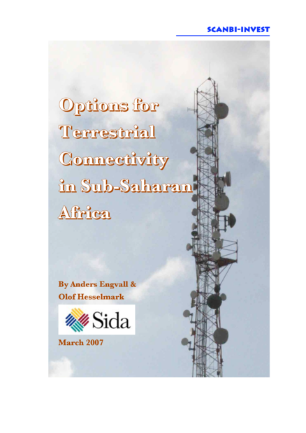 "This report makes an inventory of existing transmission backbones in Sub-Saharan Africa, and discusses issues related to solutions for improved utilization of such networks. Mobile GSM operators in Sub-Saharan Africa are rapidly covering most populated areas with telephone services. To reach new areas, the operators keep expanding their transmission links, and the result is the emergence of new telecommunication backbone networks. The mobile operators now own and control the bulk of transmission backbone capacity in Sub-Saharan Africa. Regulation and competition between operators have largely prevented shared use of these emerging backbones. A number of issues are raised in the report: The lack of open access, the dominating position of the GSM operators, the pricing of transmission services and regulation. It is Sida’s intention to raise these issues among African operators, regulators, policy makers, donors and financing organisations." (Back cover)
