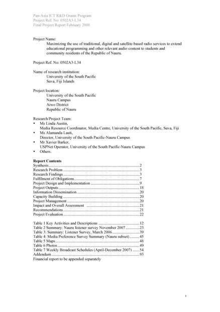 Pan-Asia ICT R&D Grants Programme Final Report: Radio Pasifik-Nauru