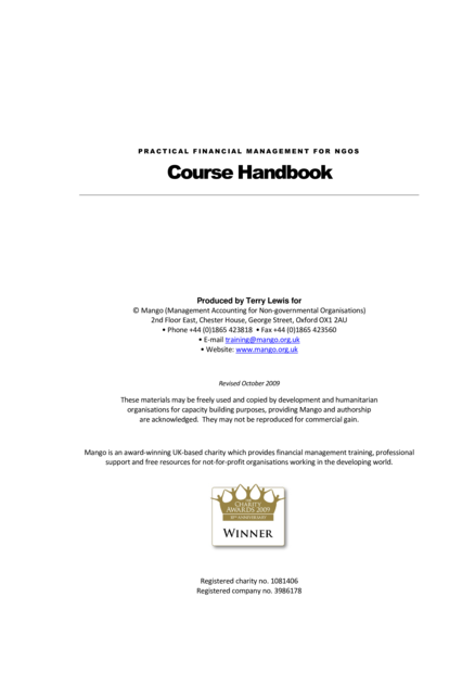 Oxford: Management Accounting for Non-Governmental Organisations (Mango) (2009), iv, 100, 26, 10 pp.