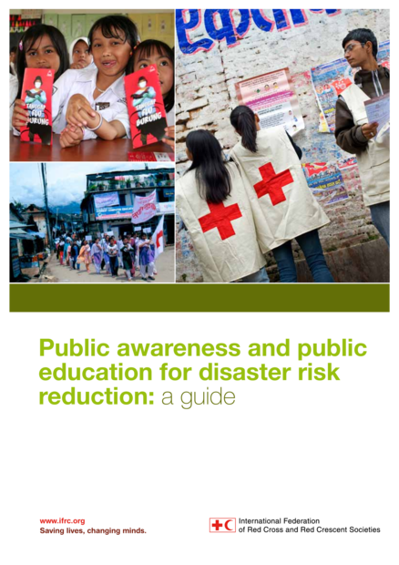 "This guide sets out approaches and tools for public awareness and public education in disaster risk reduction already widely in use by National Societies. It pulls together a range of research on risk communications and public education for behaviour change, and practitioners’ own discoveries in applying these. The guide focuses on four key approaches: campaigns, participatory learning, informal education, formal school-based interventions. It considers the following tools for implementing these approaches, including publications, curricula, modules and presentations, e-learning, performing and cultural arts, games and competitions, audio and video materials, web pages and activities, and social media and telecommunications. It then explains how to ensure that these tools are high quality, focusing on powerful images and well-crafted messages that are engaging, proven, adapted and localized. It also highlights the principles needed to apply these effectively: ensuring legitimacy and credibility, consistency and standard messaging, scalability, and sustainability. Through a wealth of examples, the guide highlights integrated experiences, approaches and tools, by region." (Pages 9-10)