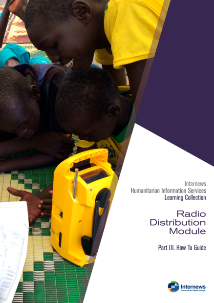 "[This] guide provides a detailed, step-by-step methodology for conducting a radio distribution, based on Internews’ experience in four HIS project locations: Malakal, Juba (UN House), Bentiu and Bor. The practical application of the guide will be particularly relevant for NGOs, UN agencies, CSOs, local authorities and any other organization seeking to carry out a radio distribution. This guide outlines the step-by-step processes and potential challenges that may arise. You will find information and advice on the entire process, including how to choose the right radio to suit your conditions, how to select beneficiaries, how to recruit staff, and how to monitor and evaluate the impact of the distribution." (Introduction)