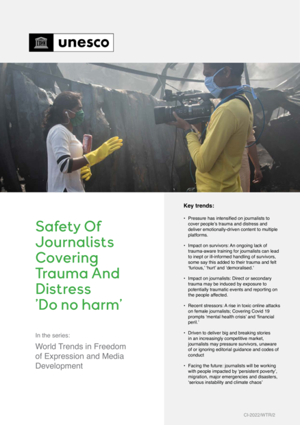 • Impact on journalists: Direct or secondary trauma may be induced by exposure to potentially traumatic events and reporting on the people affected.