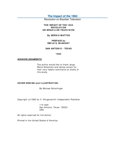 "Presents the evolution of Brazilian television since its beginnings in 1950, respectively the communication policy since 1964 and the influence of several socioeconomic factors." (commbox)