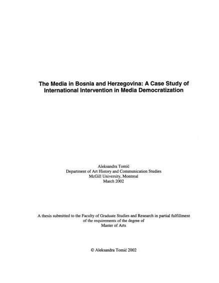 The Media in Bosnia and Herzegovina: A Case Study of International Intervention in Media Democratization