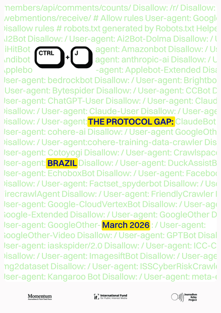 "An overwhelming majority of news websites in Brazil have either no AI-scraping policy at all or a very permissive approach. As of November 2025, only 7.2% of Brazilian news websites disallow at least one AI crawler through the use of a robots.txt file, even though most news sites (75%) have a robots.txt file in their website. Websites in Brazil that implement robots.txt directives focus their efforts on what appear to be the most well known AI crawlers from OpenAI, Common Crawl, Google, ByteDance, Amazon, Apple, Meta and Huawei. This data indicates that many websites do not use robots.txt as a mechanism to signal their preferences regarding AI companies scraping their content. Keeping an updated robots.txt file is not a foolproof solution, but it is a readily available tool for newsrooms to state the preferences regarding the use of their content, in line with the organization’s content strategy and business model. Whatever their stance, organizations need to be able to have a clear public direction as to how their content is used to train new AI models." (Key findings, page 4)