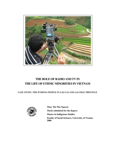 "Nowadays, ethnic minorities in Vietnam are still coping with serious difficulties in life such as poverty and illiteracy. Meanwhile, media for ethnic minorities, including radio and TV for ethnic minorities in Vietnam, are at a low level of development. In fact, both VTV5 (the TV division for ethnic minorities, belonging to the national TV station VTV) and VOV4 (the radio division for ethnic minorities, belonging to the national radio station VOV) have made a lot of effort to produce suitable programs for minorities but there remain limitations in both content and the ways used to express the content of those programs. The reasons come from difficulties in both radio and TV stations and minorities. However, roles of radio and TV in the life of ethnic minorities in Vietnam are obviously increasing quickly and are displayed more and more effectively. I focused on the two main roles of radio and TV as educational instruments and as instruments for assisting minorities in preserving their identity, highlighting their effects in preserving minority languages and cultures." (Abstract)