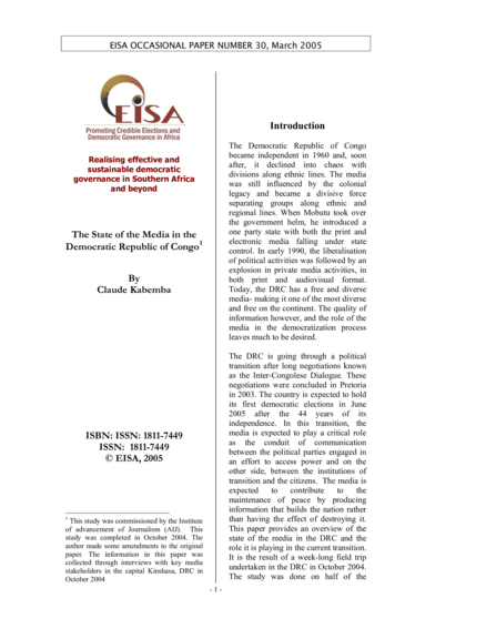 The State of the Media in the Democratic Republic of Congo