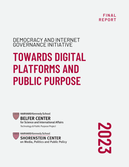 "This paper serves as a summary report for the Democracy and Internet Governance Initiative, a two-year joint initiative between Harvard Kennedy School’s Belfer Center for Science and International Affairs and Shorenstein Center on Media, Politics, and Public Policy. It delves into the rationale and components of a new risk-centered approach to analyze and address the negative impacts of digital platforms. It also explores the key dimensions that should be considered when assessing platform risk, including mental and physical health, financial security, privacy, social and reputational wellbeing, professional security, sovereignty, and strength of public goods. The paper then underscores the necessity and value of comprehensive disclosure schemes in order to better understand the cause and effect of digital platforms and related products within the scope of a risk framework. Through the establishment of standards setting bodies dedicated to addressing itemized risks, we argue that this is the infrastructure necessary for sustainable regulation and self-governance that is dynamic and public purpose-oriented. Throughout each section, we aim to underline the significance of stakeholder engagement in the governance process. Platforms themselves, civil society organizations, policymakers, researchers, and users all have important perspectives, experiences, and jurisdiction needed to effectively mitigate harms of digital platforms. Engaging all stakeholders in a collaborative manner will enhance the framework's relevance, legitimacy, and practicality." (Executive summary)