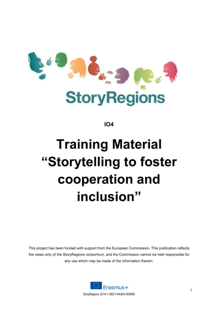"This training module is a compilation of material initially gathered to help partners prepare and develop their pilot projects. As such it can be of use for anyone who wants to use storytelling or storytelling methods as tool to build cooperation and/or to support learning. After a theoretical introduction to storytelling and its benefits, these guidelines focus on the potentials and applications of storytelling for networking as well as on the practical implementation. In the second part a number of exercises for different target groups and contexts are presented, followed by some practical tips. Finally these guidelines provide some suggestions for further reading and online resources. In the project StoryRegions we have agreed that the most important “storytelling methodology” to support and improve social inclusion and community building is bringing people together – people from organisations, associations, education, libraries etc – and then, when a network with stakeholders and target groups has been created, to implement storytelling as a tool within this network. At this stage a wide range of storytelling approaches and techniques can be used." (Introduction)
