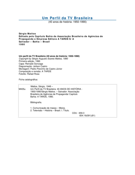 Salvador de Bahia: Associacão Brasileira de Agencias de Propaganda (ABAP);A Tarde (1990), xiii, 85 pp.