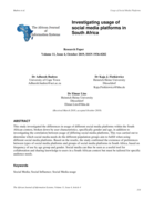 "This study investigated the differences in usage of different social media platforms within the South African context, broken down by user characteristics, specifically gender and age, in addition to investigating the correlation between usage of differing social media platforms. This was carried o