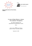 "This research project in Liberia has tried to do first steps to understand in detail the quality of media, especially radio, in Liberia and what the audience is thinking of and expecting from the media. Being the first of its kind in Liberia after the end of the civil war it has investigated a) the