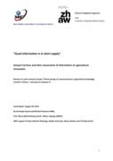 its rural population. Shortcomings in information are presumed to be one essential element that might hinder the uptake of new methods that are made available by agricultural research. For this purpose a survey with 600 small-scale farming household was conducted, investigating the information needs and patterns. The main results of the survey point to (a) the dominating role of radio as the main media channel used by almost all farmers for receiving agricultural information and much less the mobile phone that is thought by Western donors and NGOs to be the new information tool (b) the high credibility of Government extension services as the most trustworthy source regarding agricultural information although farmers bemoan the fact that extension officers are difficult to reach and less available than expected, and (c) the apparent gap between what farmers need and what they get in two respects: They mainly get technical information, for example on new varieties, planting methods or new crops, but they also want more information on markets, gaining more income and more basic knowledge. They prefer to receive information as a comprehensive package and not isolated bits. Secondly, they prefer another mode of getting information, not the usual top down approach with little explanation, but a comprehensive mode which provides them with various options accompanied by a lot of explanation. Surprisingly, many farmers say that they lack even basic knowledge of good agricultural practice." (Executive summary)