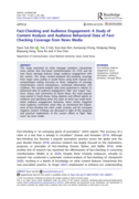 nual and computerized coding, focusing on three categories of message characteristics: source transparency, contextual information, and vividness. The content-analysis data were examined in relation to behavioral data of audience engagement (“like” and “angry” reactions, shares, and comments) on Naver News, the most popular news portal in South Korea. Using statistics and official reports as evidence and specifying when the claim at hand was made facilitated audience engagement behaviors. News articles triggered more audience comments when they (a) mentioned the importance of fact-checking the claim under scrutiny, and (b) conveyed negative content. Findings are discussed in light of the empirical and practical implications of the current efforts to fight “fake news” by news media." (Abstract)