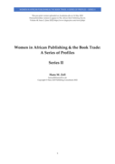 es who suggested that publishing was a complex business, best left to men, and that it might be rather more appropriate if she were to set up a restaurant instead of a publishing house! Happily, such blatantly chauvinist attitudes are now largely a thing of the past, and it would probably be true to say that much progress has been made in gender equality in African publishing in recent years. This has seen the emergence of a whole new generation of agile, visionary, and enterprising women publishers, as well as many other women who have provided leadership, and have made significant contributions in the African book world." (Abstract)