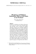 ce relations. This article highlights the position of blasphemy and religious defamation according to International Law, and presents counterarguments of the main objections to such laws. It also highlights the issue from the Islamic perspective, and offers an alternative approach to interpreting human rights. This article concludes by explaining the need for human rights and free speech to be interpreted according to common moral and religious values, and emphasising the purpose of human rights and free speech—which should be for the attainment of justice." (Abstract)