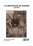 loppée la figure du correspondant de guerre aventurier « n’écoutant que son courage et cette étrange passion de reporter », comme l’écrit le journal Ce soir à propos de sa reportère-photographe officielle en Espagne durant la guerre civile, Gerda Taro, morte sur le terrain en 1937. Cette bibliographie se propose d’éclairer « l’envers du décor » du reportage de guerre à travers une sélection de documents disponibles pour la plupart en salle B de la bibliothèque tous publics." (Abstract)