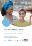 rm of remuneration. Child domestic work is common in Addis Ababa as it serves as an entry point into the labour market for girls migrating from rural to urban areas in Ethiopia (Erulkar et al., 2017). Indeed, a recent study estimated the prevalence of domestic work among girls aged 12–17 in Addis Ababa to be 37% (Erulkar et al., 2022). Though domestic work is not necessarily a harmful form of child labour, CDWs in Ethiopia often face mistreatment and abuse from their employers (Population Council and Freedom Fund, 2021). This mistreatment is linked to broader social norms which place CDWs as inferior and less worthy than other members of the household. In an effort to change norms and behaviours towards the treatment of CDWs, the Freedom Fund implemented a norms and behavioural change campaign (NBCC) in 2022. The NBCC targeted employers of CDWs in Addis Ababa. It was funded through the Program to End Modern Slavery, an initiative of the United States Department of State’s Office to Monitor and Combat Trafficking in Persons and was part of the Freedom Fund’s broader ‘Reducing the Prevalence of Child Domestic Servitude in Ethiopia’ programme. Based on the findings of formative research, the main objectives of the NBCC were to shift norms and behaviours relating to CDWs’ working conditions and access to education. [...] The NBCC reached 57% of employers interviewed during the baseline. Television was by far the main medium through which respondents were exposed to the campaign (95%) followed by online media (13%), physical posters (13%), and community discussions (6%). Using data on recall of campaign materials and participation in campaign activities, respondents were classified into three categories based on level of exposure: no exposure (43%), low exposure (17%), and high exposure (40%). The NBCC’s reach appears to have been uneven as younger respondents, women, and those with more education tended to have a higher level of exposure. Survey findings emphasised the differences in working conditions and access to school between CDWs who are related to their employer and those who are not. Whereas some CDWs are recruited as domestic workers, others are relatives of their employer (for example, a niece) and have been sent by their family to live in Addis Ababa. Those in the first category tend to work longer hours, as reported by their employer (35 per week compared to 24 for those related to their employer) and are less likely to be enrolled in school (25% compared to 75%)." (Executive summary)
