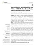 lderly. These misconceptions served as risk attenuators among Ghanaians, especially the younger generation. As the infection evolved in the country, another misconception emerged that the hot climate in Africa inhibited viral replication and transmission only to be followed by speculations and conjectures that COVID-19 was being used as a biological weapon to target developed economics. For the management of COVID-19, the use of local remedies such as Neem tree (Azadirachta indica) and herbal preparation also emerged. Myths about the efficacy of locally manufactured gin (akpeteshie) and hydroxychloroquine as prophylaxis led to abuse of such substances. Interview segments revealed the use of myths to propagate political agenda in the country. The study concludes that COVID-19 misconceptions and misinformation are widespread and cover the course of the condition. These myths necessitate culturally sensitive health communication strategies that take into account local perceptions of COVID-19 in order to tackle the circulation of misconceived messages about the pandemic in Ghana." (Abstract)