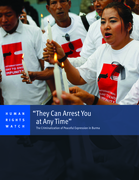 visions, among other laws. It draws from interviews with individuals facing charges, former political prisoners, journalists, students, activists, and members of civil society organizations. The new NLD-led government has taken strong first steps to release political prisoners and repeal abusive laws, but with Burma’s constitution giving the militarycontrol of the police, arrests under these abusive laws continue. Human Rights Watch calls on the government to drop all pending and new charges against peaceful critics and protesters and make it a priorityto dismantle the legal infrastructure of repression in Burma by amending or repealing all laws thatcriminalize peaceful expression and bringing them into line with international human rights standards." (Back cover)