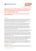 omen, rural residents, and older and less educated citizens. Among Ugandans who have heard of social media, large majorities say it makes people more aware of current happenings (89%) and helps people impact political processes (74%). On the other hand, majorities also say it makes people more likely to believe false news (70%) and more intolerant of others with different political opinions (58%). Overall, 58% of citizens who are aware of social media rate its effects on society as positive, while only 13% see them as negative. A majority (56%) of Ugandans “agree” or “strongly agree” that access to the Internet and social media helps people to be more informed and active citizens, and should be unrestricted. A quarter (26%), however, say the government should be able to regulate access." (Key findings, page 2)
