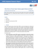 "This document presents findings from a rapid review of available literature on what has worked to prevent cyber violence against women and girls. Key findings include: There is limited data on cyber violence against women and girls (VAWG) in general, and particularly on what works to prevent it [..