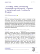e income opportunities, which often lack decent working conditions and adequate protections. Because digital livelihood initiatives lack the power to reshape these conditions and the value of work in the internet economy, they fail to become mediators with a transformative impact. The result is that the internet economy reshapes livelihoods provision far more than aid can reshape its disempowering effects, despite successes in driving forward refugees’ digital inclusion. Based on more than three years of research including interviews, field visits and surveys, this article foregrounds the current risks that result from the inclusion of refugees into precarious forms of online gig work. To ensure a decent future of work for refugees in the internet economy, the current push for digital livelihoods will require an equally strong push for stronger protections, inclusive regulations and rights." (Abstract)