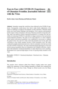 journalists felt the impact of these disruptions with many Ghanaian journalists losing their jobs. This study used affective-emotive theoretical perspective to examine how the possibility of contracting COVID-19 could affect or trigger emotions of fear and anxiety among Ghanaian journalists. The study set two main objectives (1) what workplace safety policies and protocol guidelines were established in newsrooms to mitigate the spread of the virus and (2) to what extent did journalists fear for the safety and well-being of close family members because of their journalism work. The study conducted in-depth unstructured interviews with five journalists who had recovered from the COVID-19 infections. The study found that despite high degrees of fear and anxiety among respondents about on-assignments and workplace infections, respondents still maintained ‘emotional detachment’ to attain objectivity in news reporting. Respondents also expressed high degrees of fear of exposing family members to the virus." (Abstract)